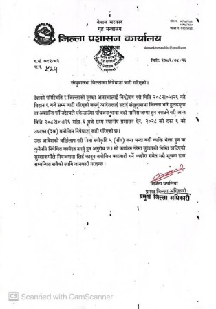 संखुवासभामा कर्फ्यू आदेश हट्यो, निषेधाज्ञा जारी