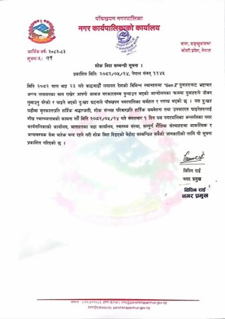 संखुवासभाको पाँचखपन नगरपालिकामा मंगलबार शोक बिदा