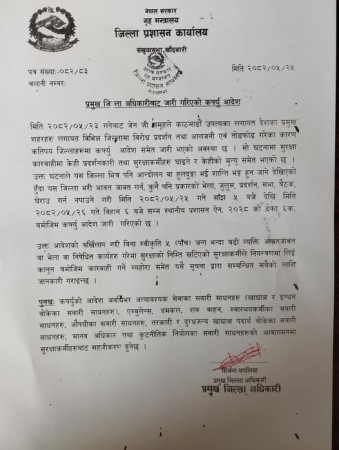 संखुवासभामा पनि निषेधाज्ञा (कफ्र्यू) जारी